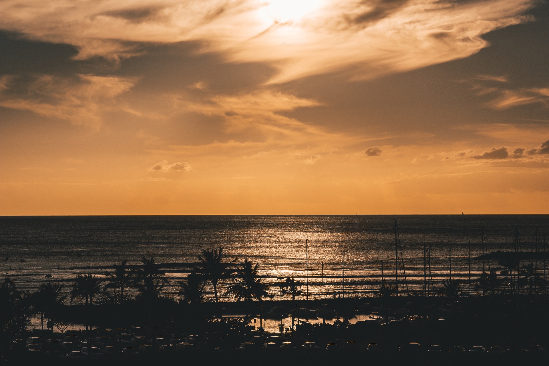 暗闇が海を覆う前に、ハワイの夕日を存分に楽しんだ。一日目あKらこんな景色に出会えるとは!