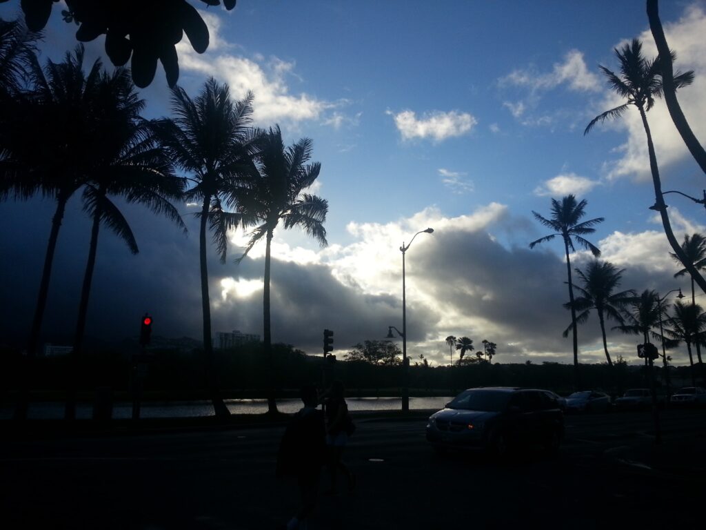 ハワイの一日目は夕方着いて、その夜に花火を見に行ったから、昼間の景色はまだ把握していない。